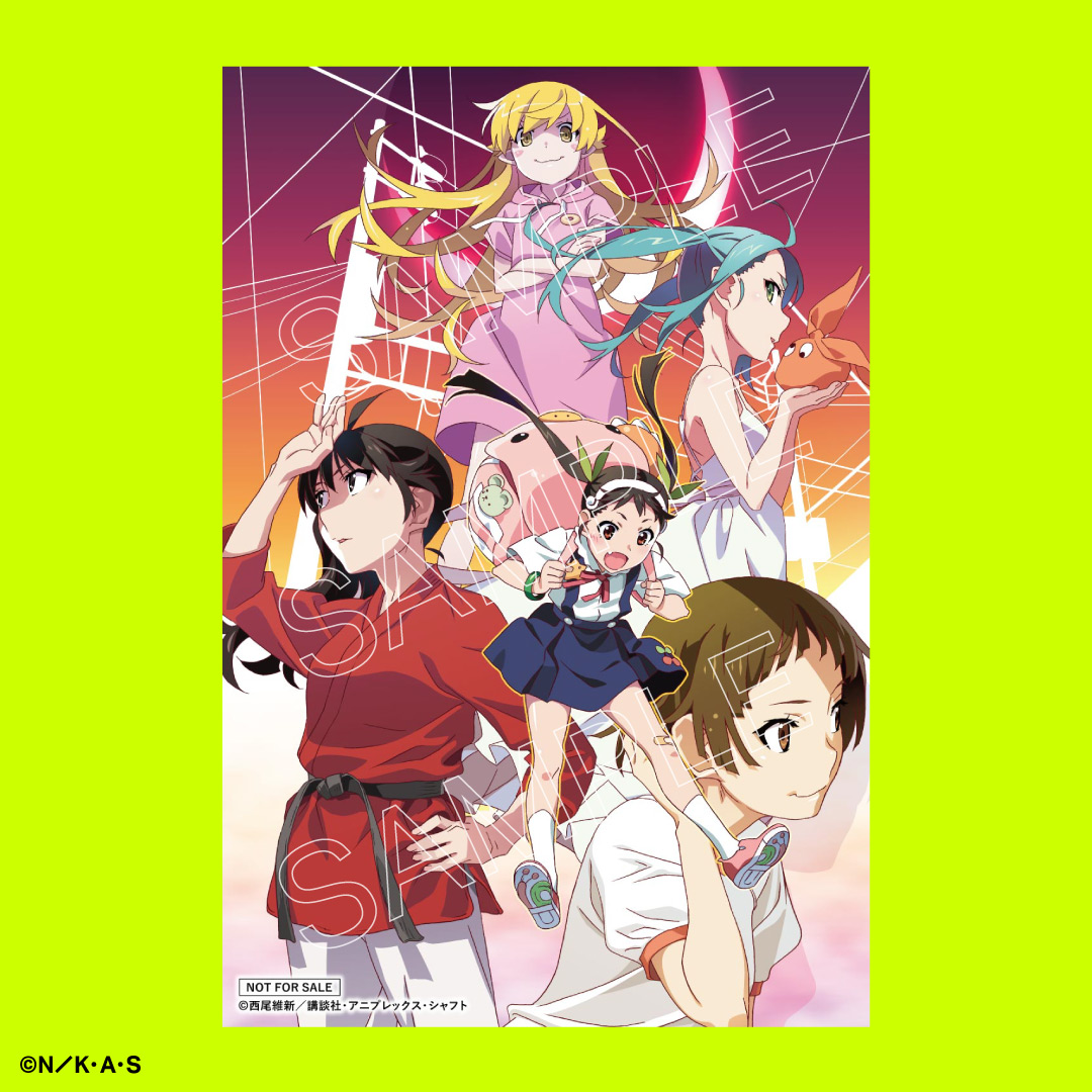 キャンペーン期間中、『〈物語〉シリーズ』関連商品を含む合計5,000円(税込)以上ご購入で、「〈物語〉シリーズ オフ&モンスターシーズン ビジュアルカード(100×148mm)」をプレゼント!