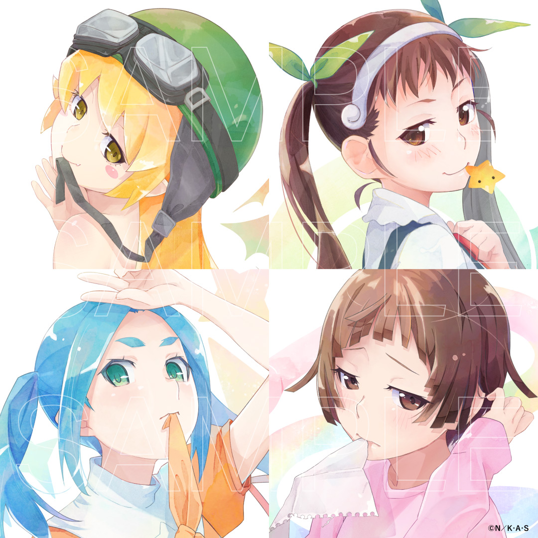 水彩風の忍野忍、八九寺真宵、斧乃木余接、千石撫子のアートパネル、アクリルスタンドをラインナップ!